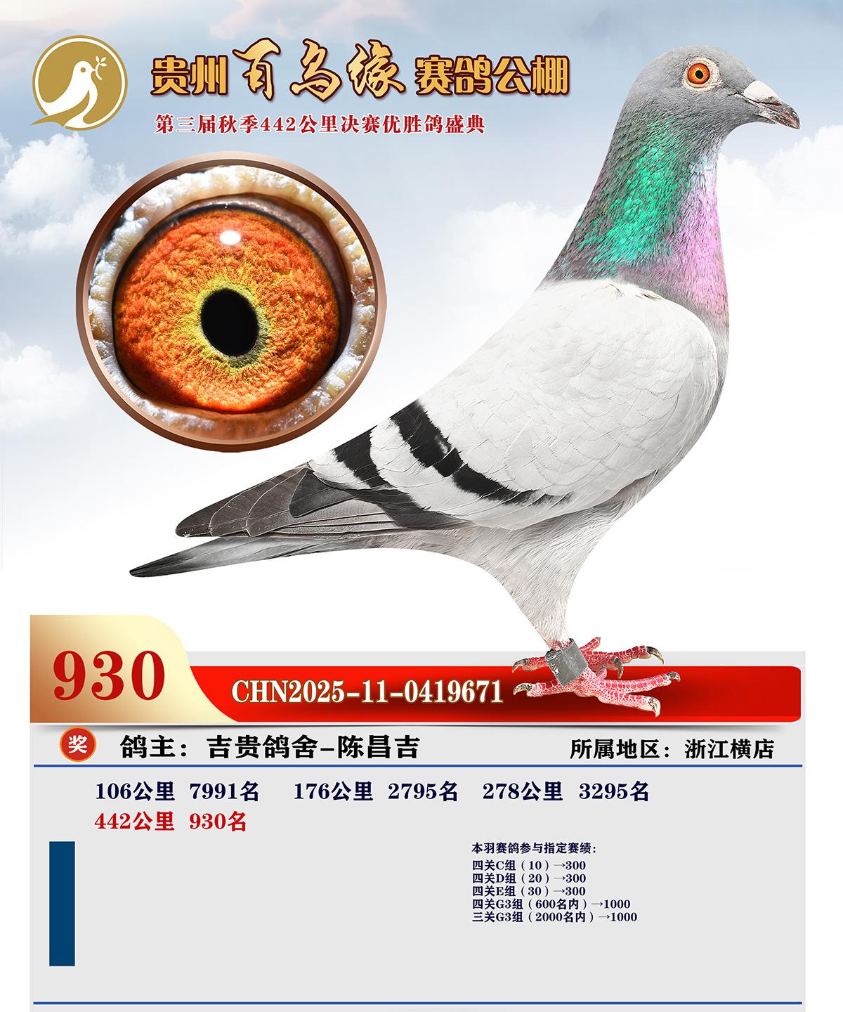 位置:贵州百鸟缘赛鸽公棚2025获奖鸽展示\决赛930名