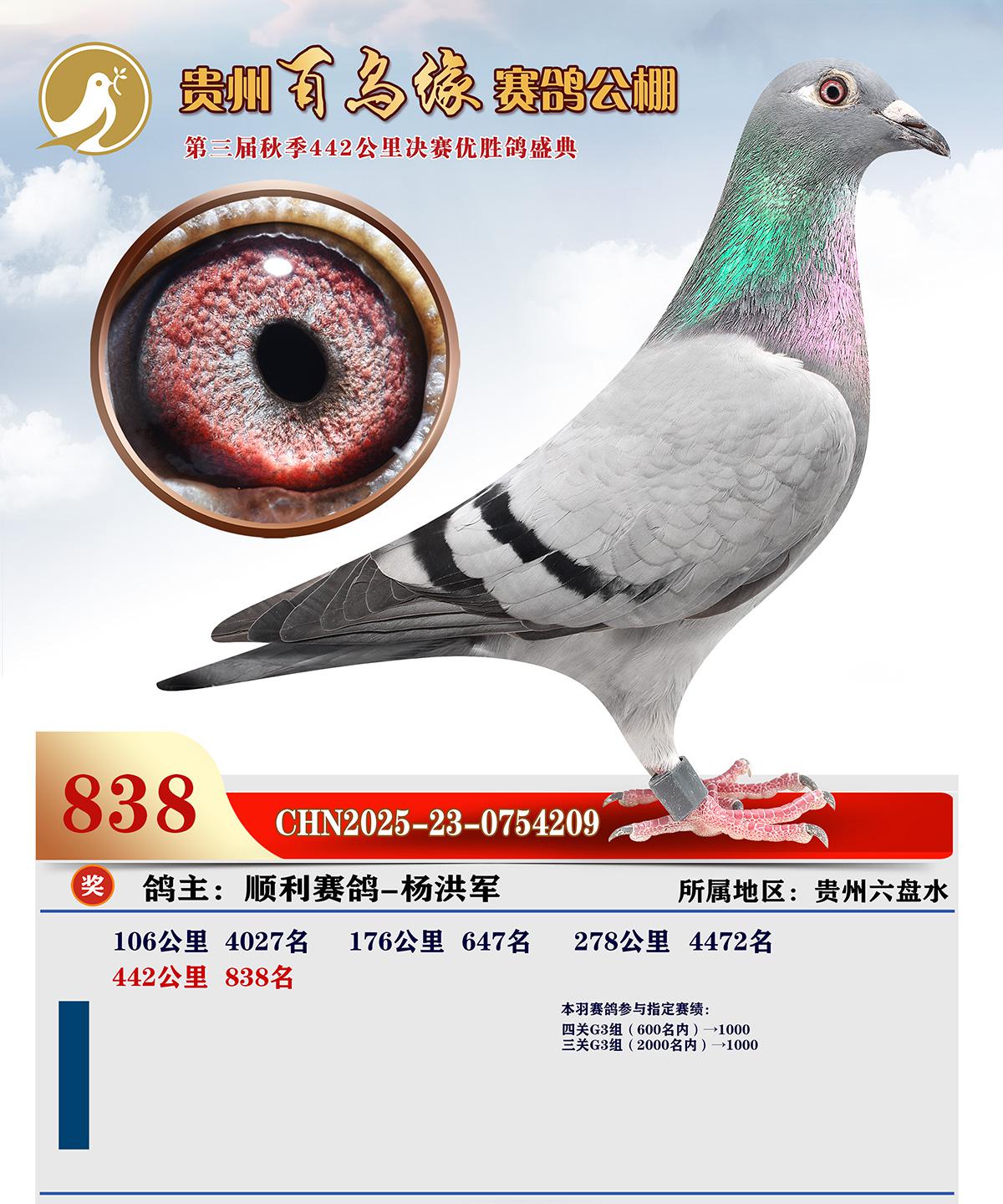 位置:贵州百鸟缘赛鸽公棚2025获奖鸽展示\决赛838名