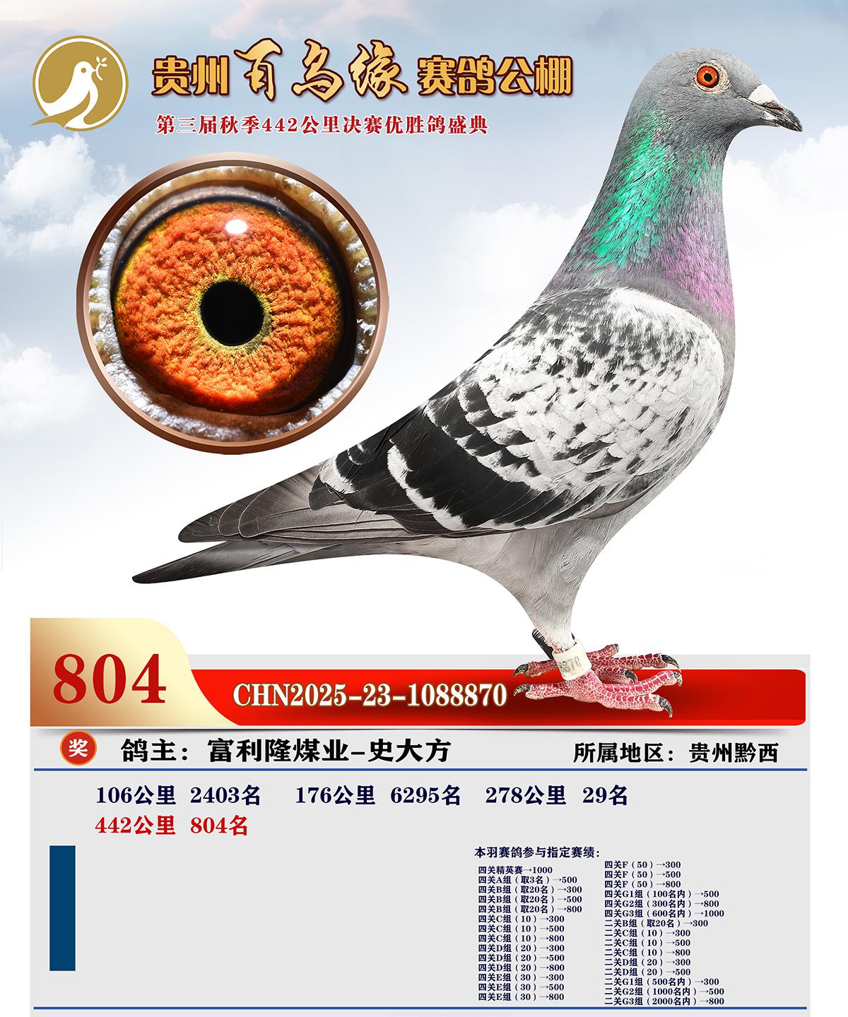 位置:贵州百鸟缘赛鸽公棚2025获奖鸽展示\决赛804名