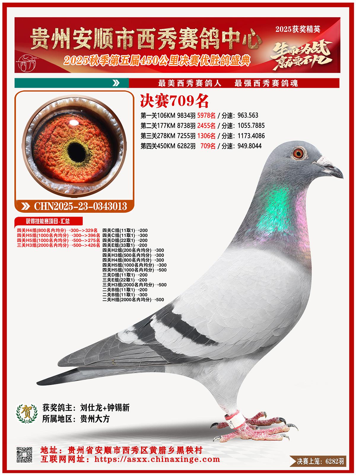 位置:安顺市西秀赛鸽中心2025获奖鸽展示\西秀决赛709名