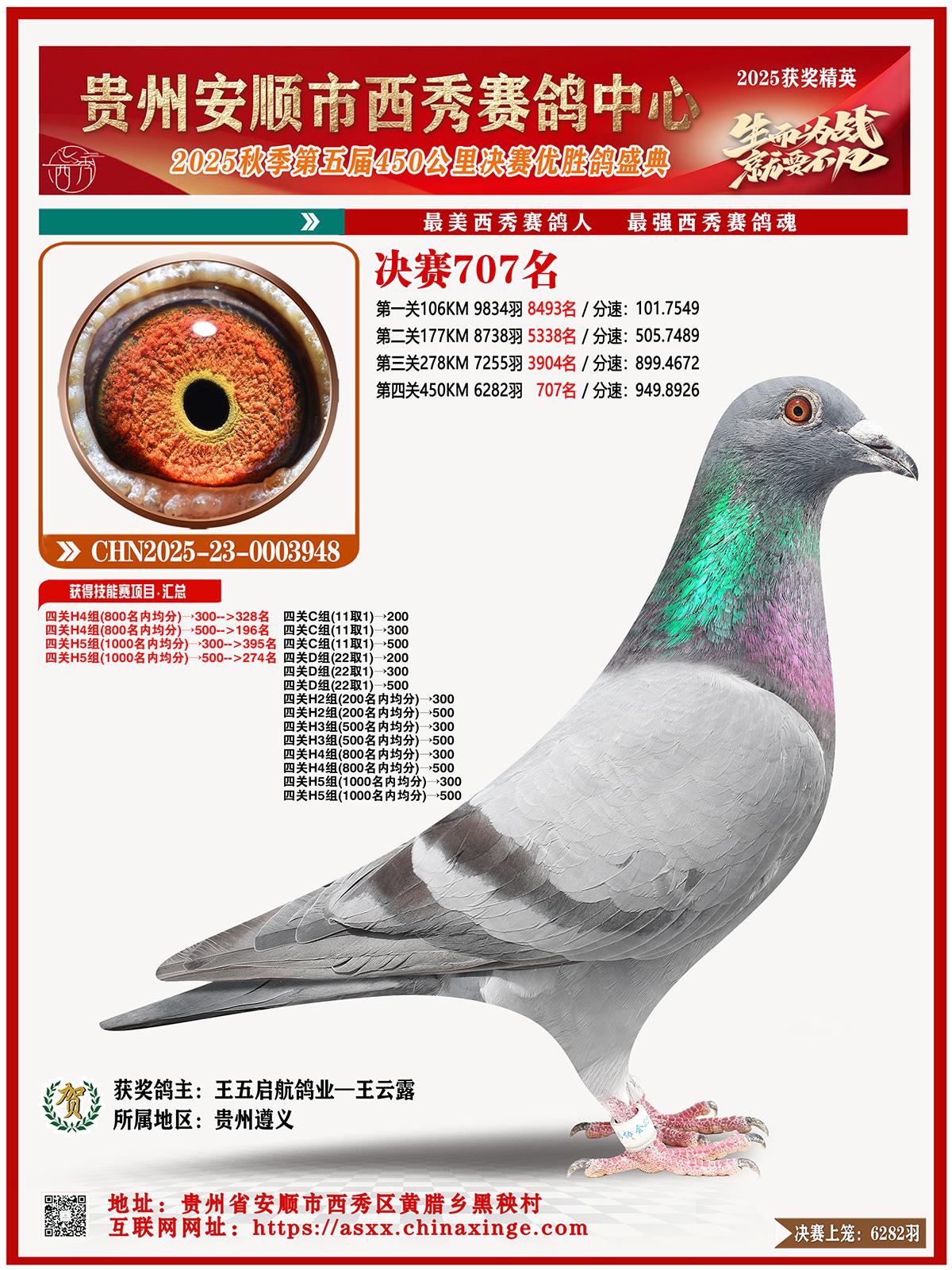 位置:安顺市西秀赛鸽中心2025获奖鸽展示\西秀决赛707名