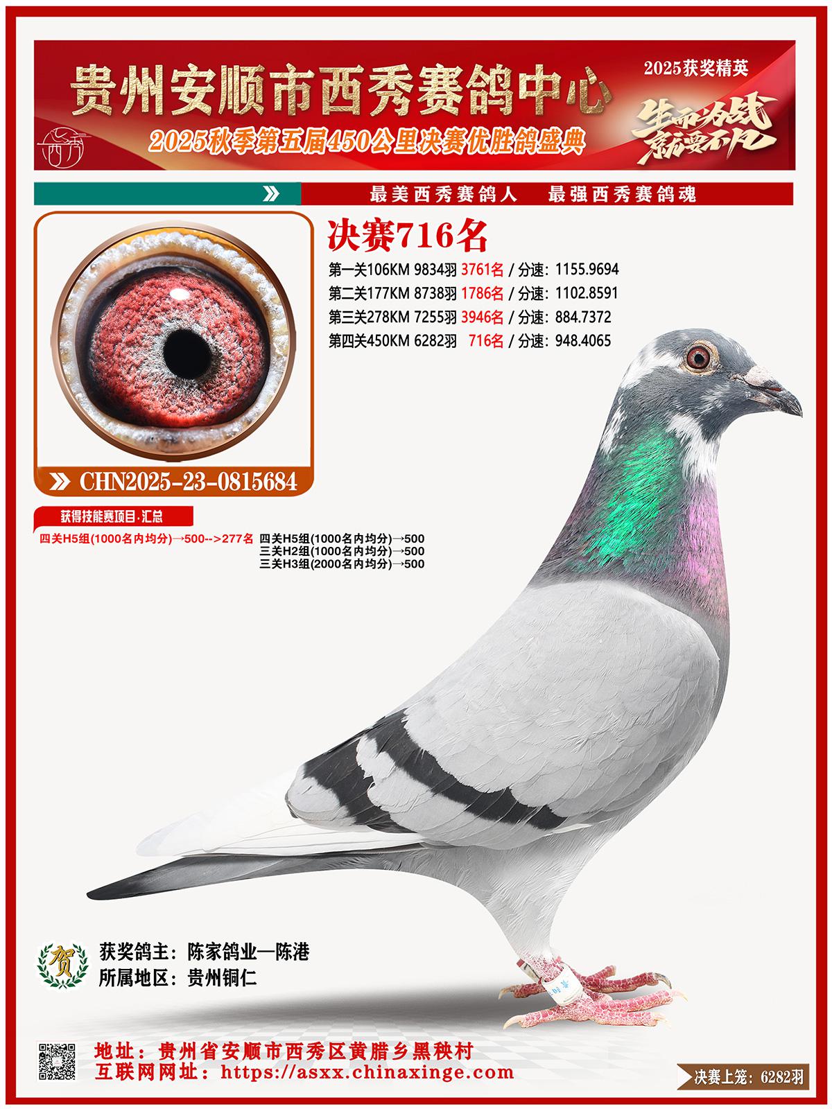 位置:安顺市西秀赛鸽中心2025获奖鸽展示\西秀决赛716名
