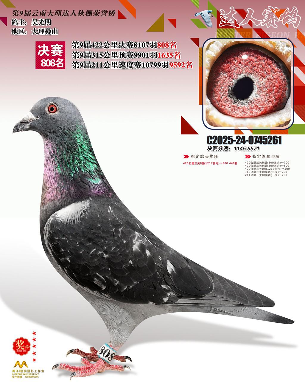 位置:云南大理巍山达人赛鸽中心2025获奖鸽展示\808名
