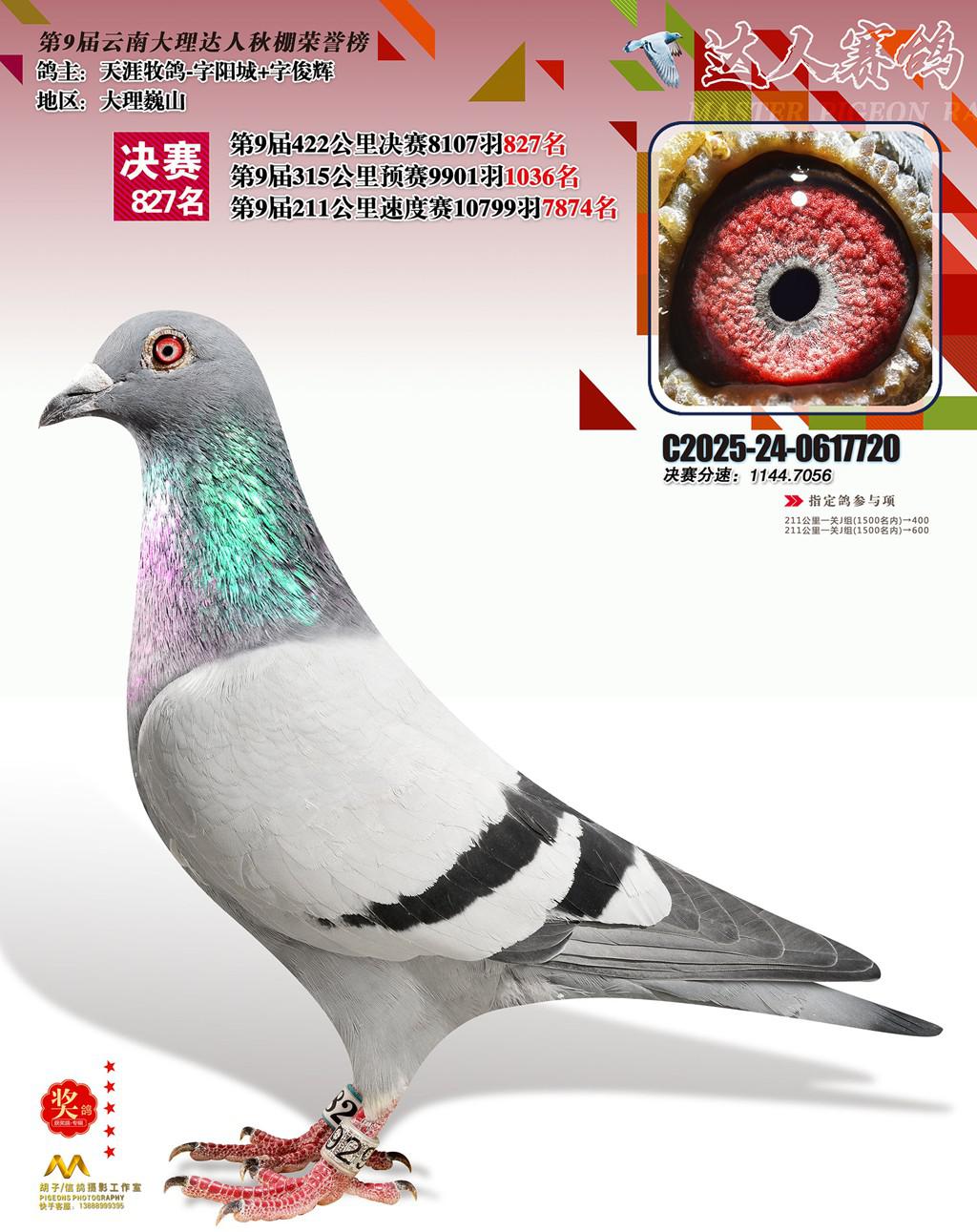 位置:云南大理巍山达人赛鸽中心2025获奖鸽展示\827名