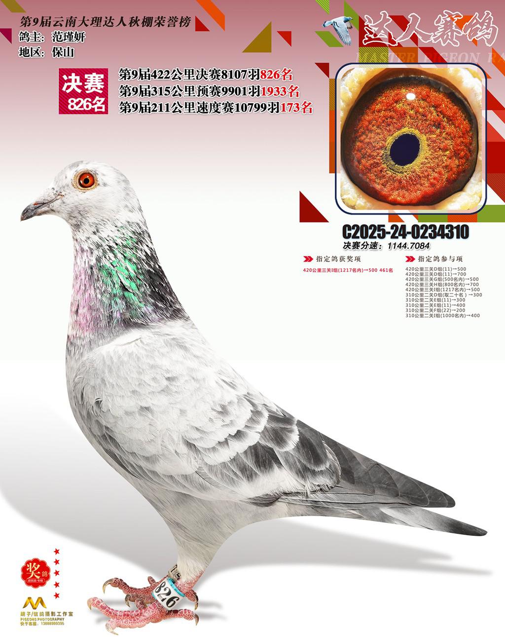 位置:云南大理巍山达人赛鸽中心2025获奖鸽展示\826名
