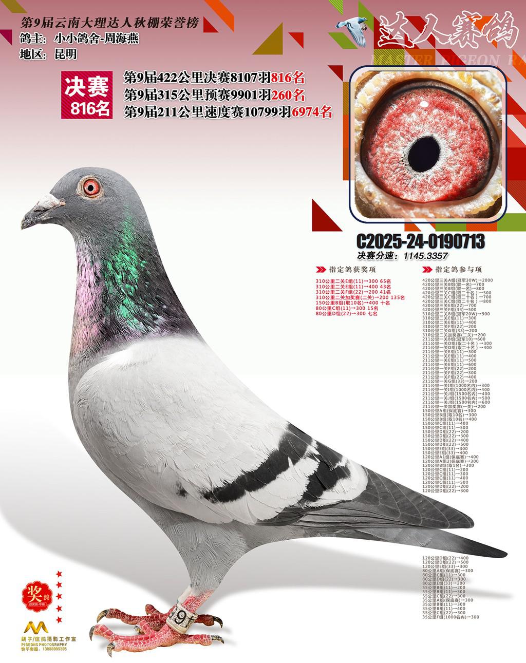 位置:云南大理巍山达人赛鸽中心2025获奖鸽展示\816名