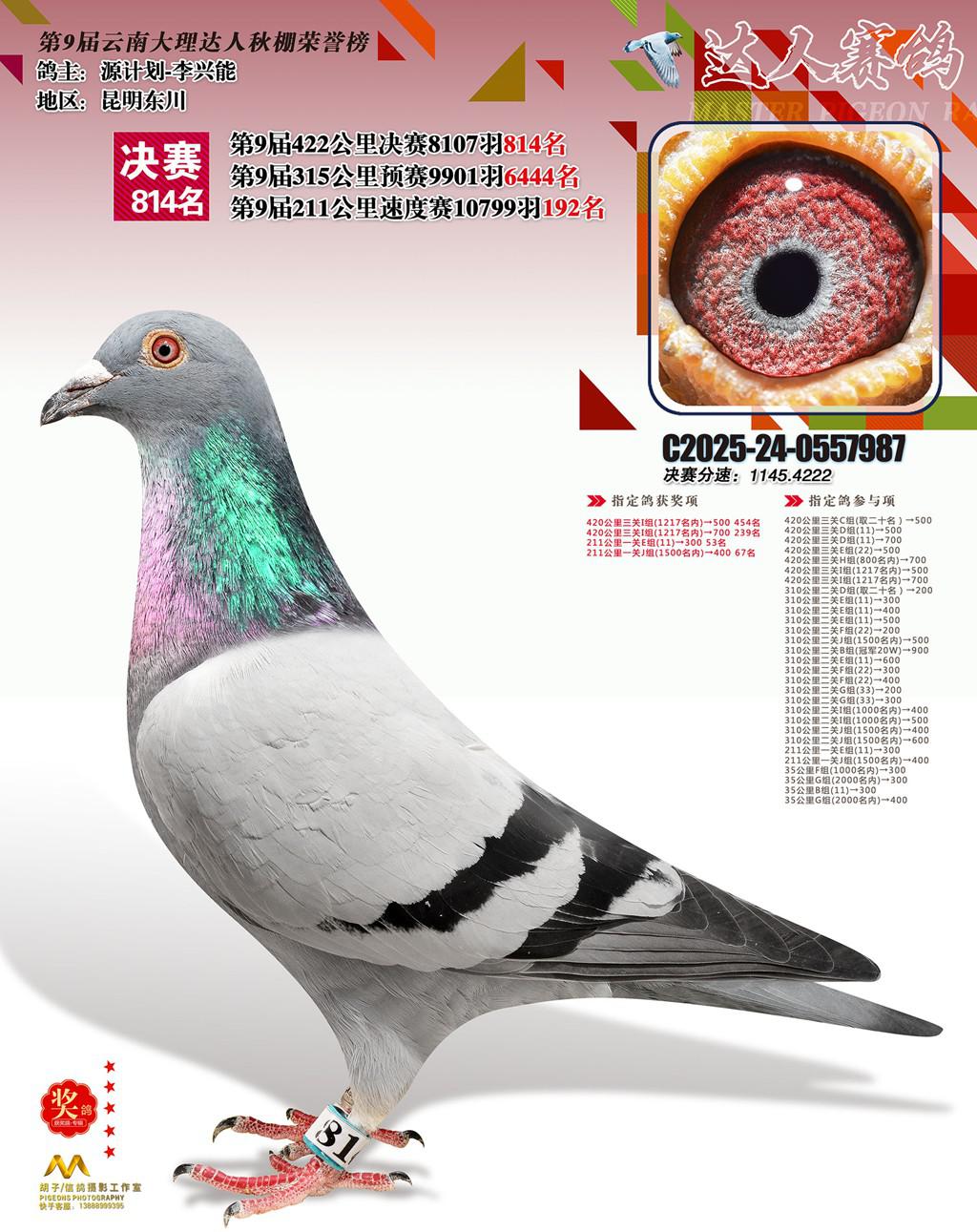 位置:云南大理巍山达人赛鸽中心2025获奖鸽展示\814名