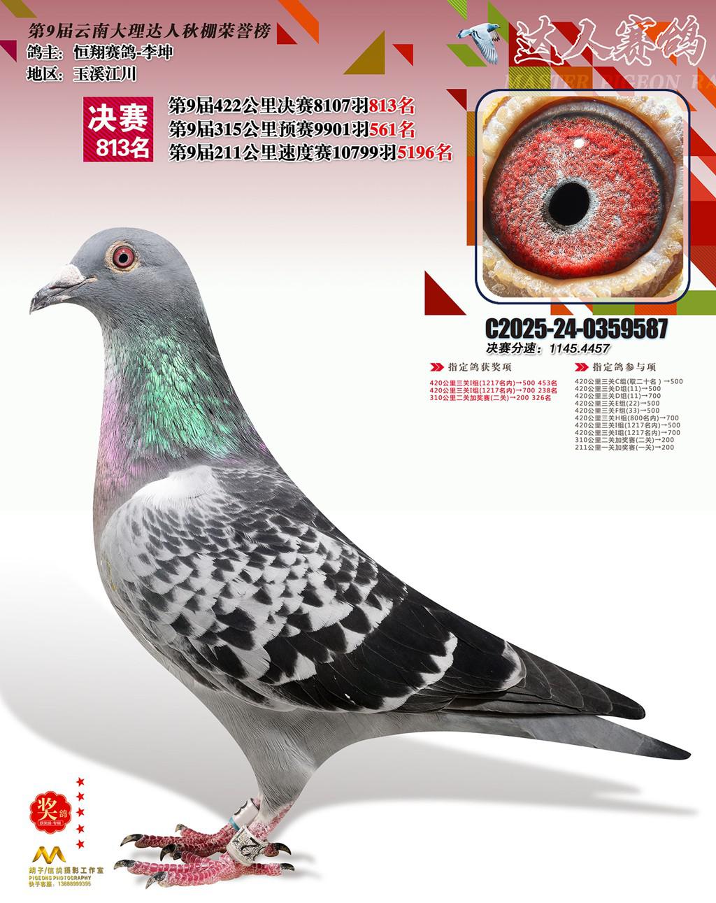 位置:云南大理巍山达人赛鸽中心2025获奖鸽展示\813名