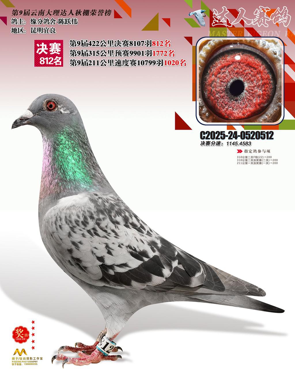 位置:云南大理巍山达人赛鸽中心2025获奖鸽展示\812名