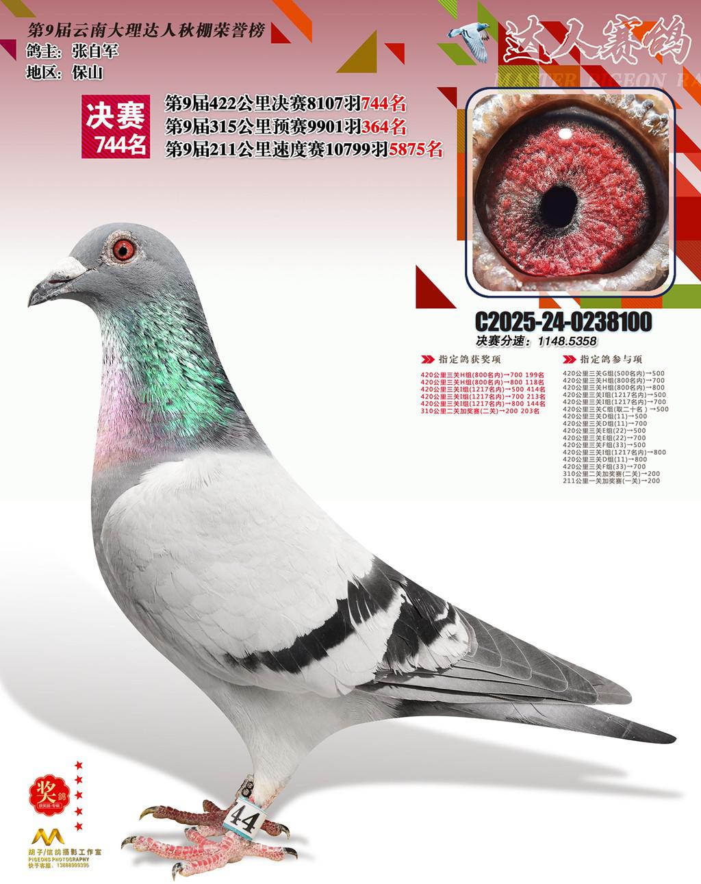 位置:云南大理巍山达人赛鸽中心2025获奖鸽展示\744名