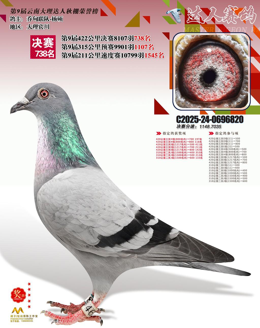 位置:云南大理巍山达人赛鸽中心2025获奖鸽展示\738名