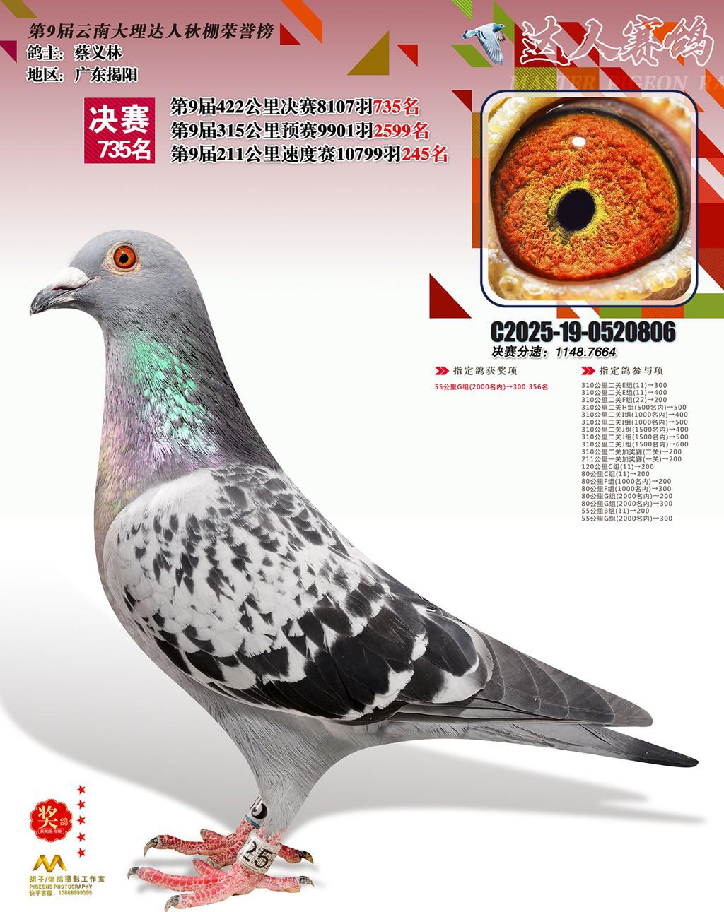 位置:云南大理巍山达人赛鸽中心2025获奖鸽展示\735名