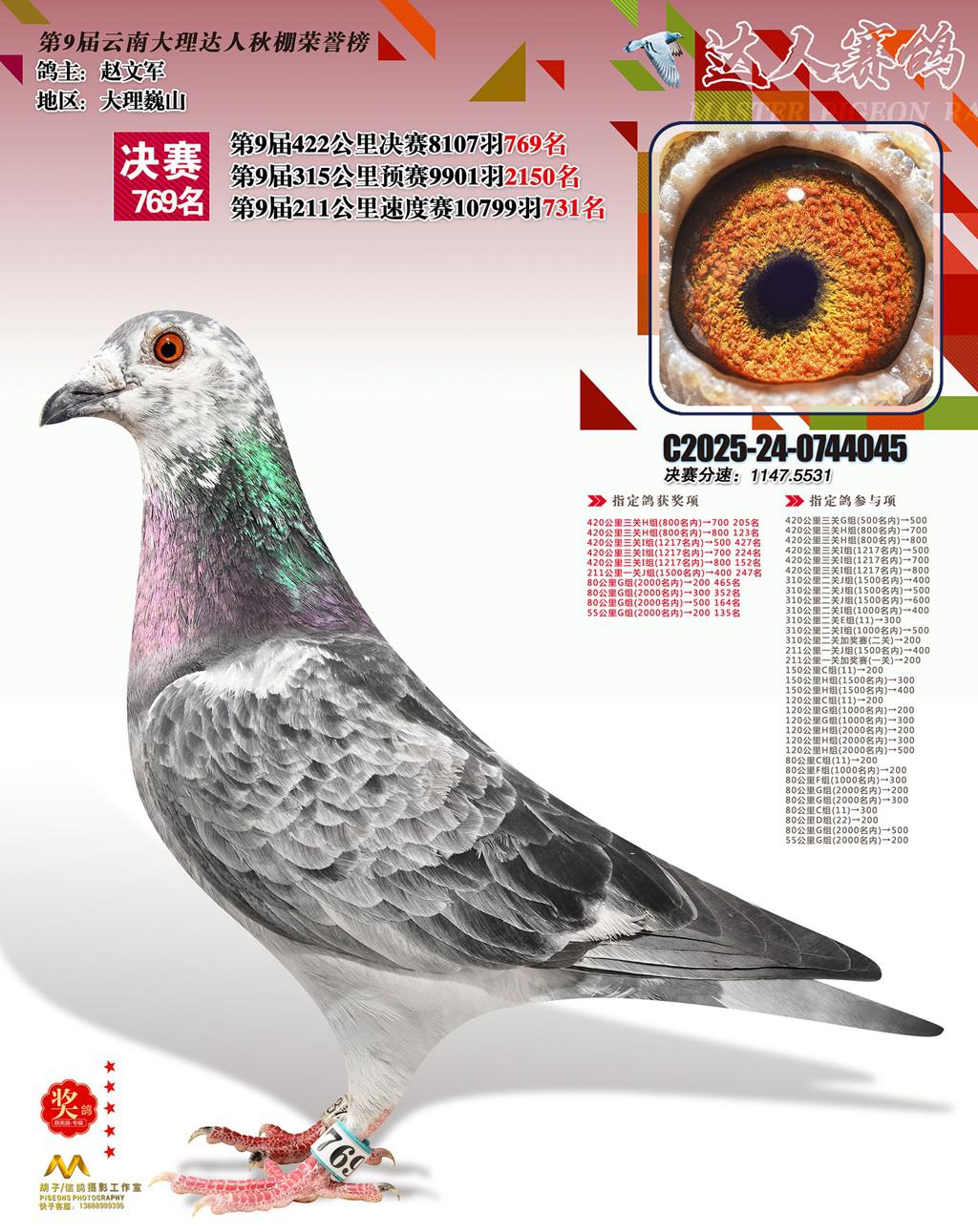 位置:云南大理巍山达人赛鸽中心2025获奖鸽展示\769名
