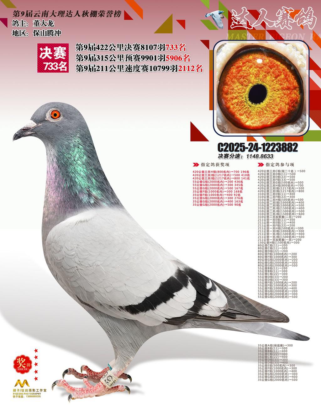 位置:云南大理巍山达人赛鸽中心2025获奖鸽展示\733名