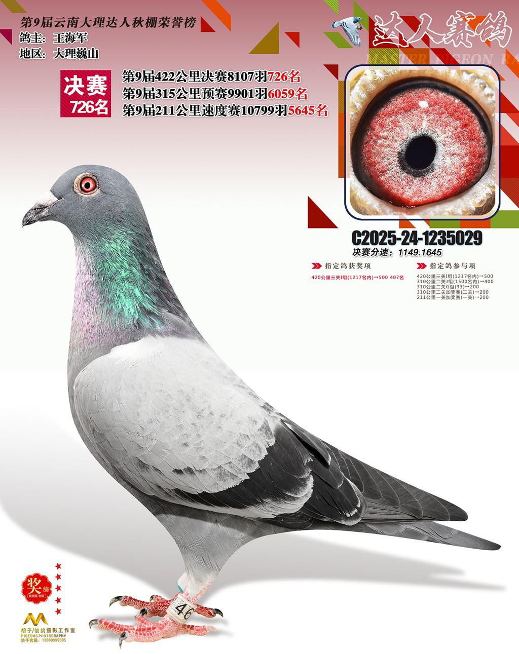 位置:云南大理巍山达人赛鸽中心2025获奖鸽展示\726名