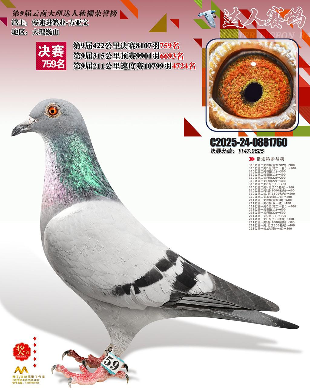 位置:云南大理巍山达人赛鸽中心2025获奖鸽展示\759名