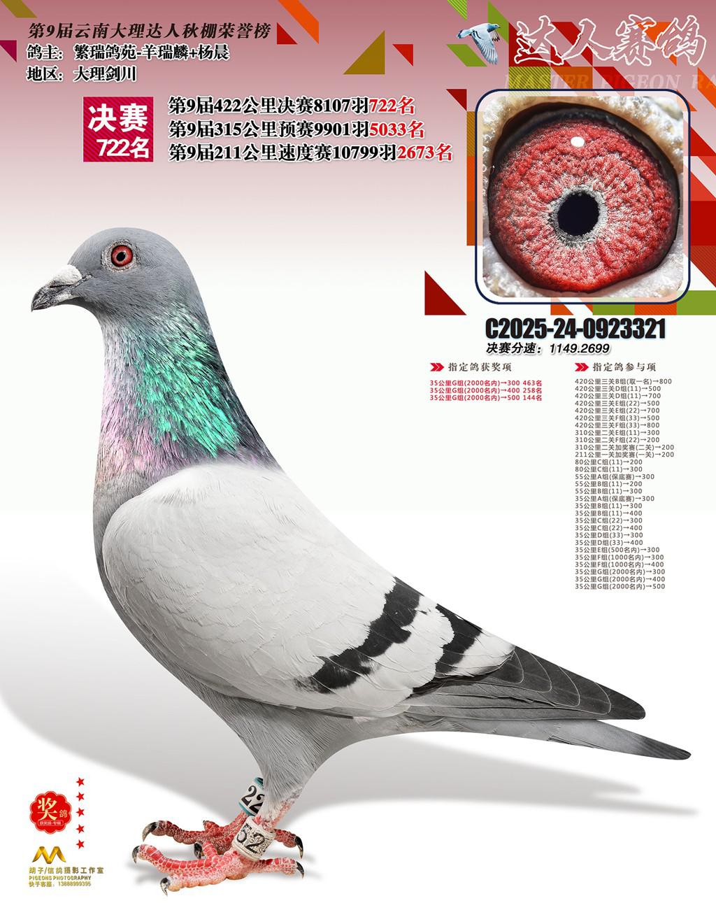 位置:云南大理巍山达人赛鸽中心2025获奖鸽展示\722名
