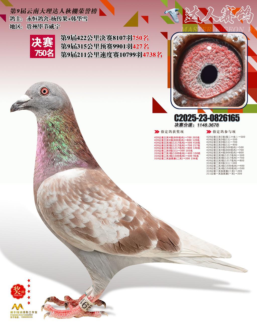 位置:云南大理巍山达人赛鸽中心2025获奖鸽展示\750名