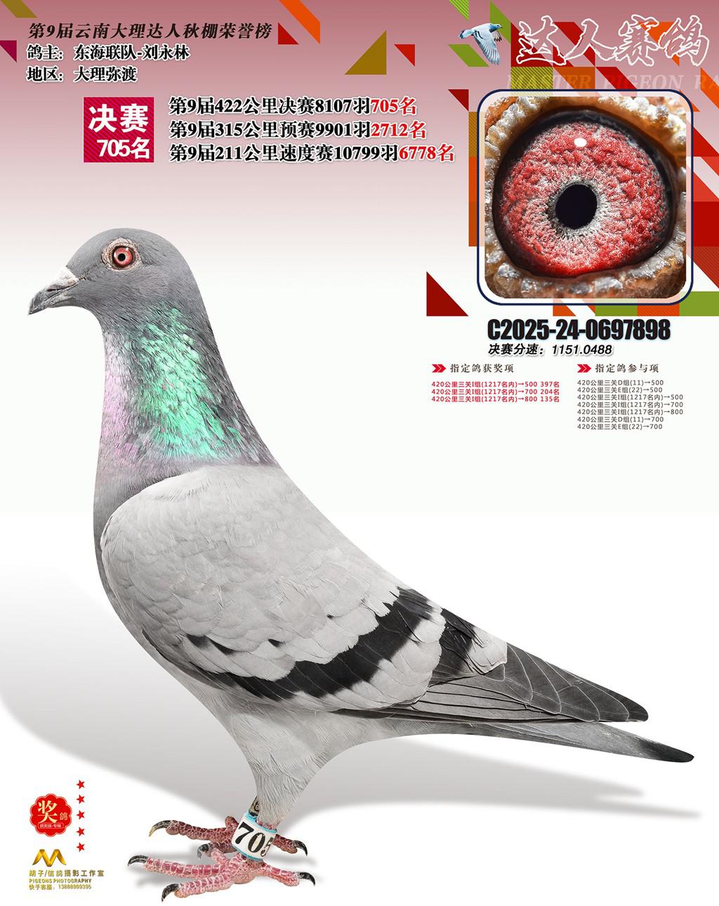 位置:云南大理巍山达人赛鸽中心2025获奖鸽展示\705名