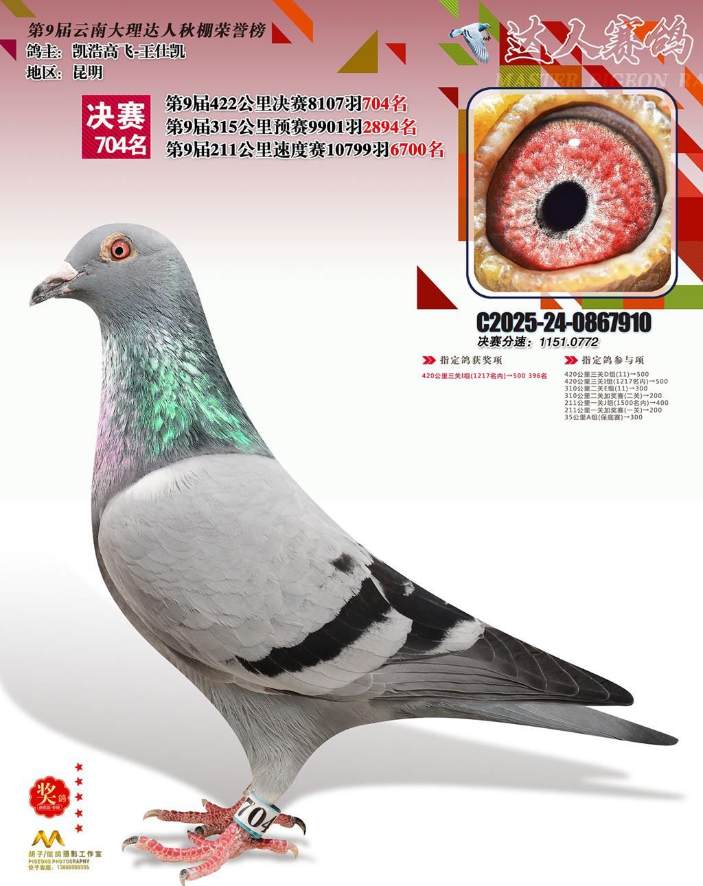 位置:云南大理巍山达人赛鸽中心2025获奖鸽展示\704名