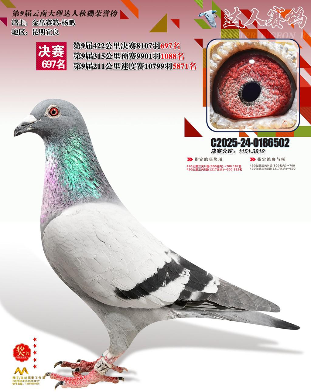 位置:云南大理巍山达人赛鸽中心2025获奖鸽展示\697名