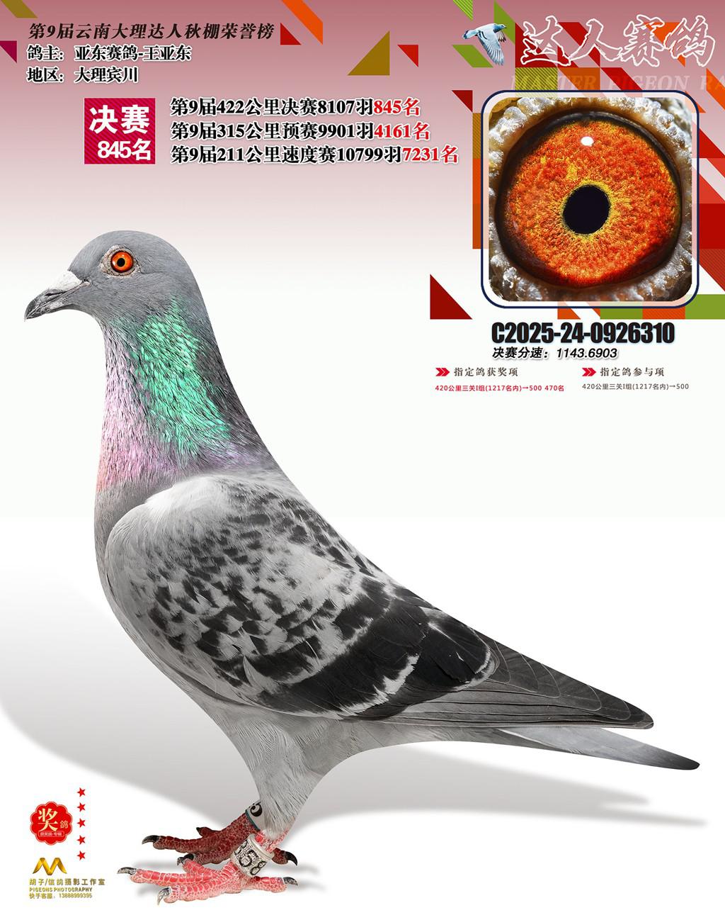 位置:云南大理巍山达人赛鸽中心2025获奖鸽展示\845名