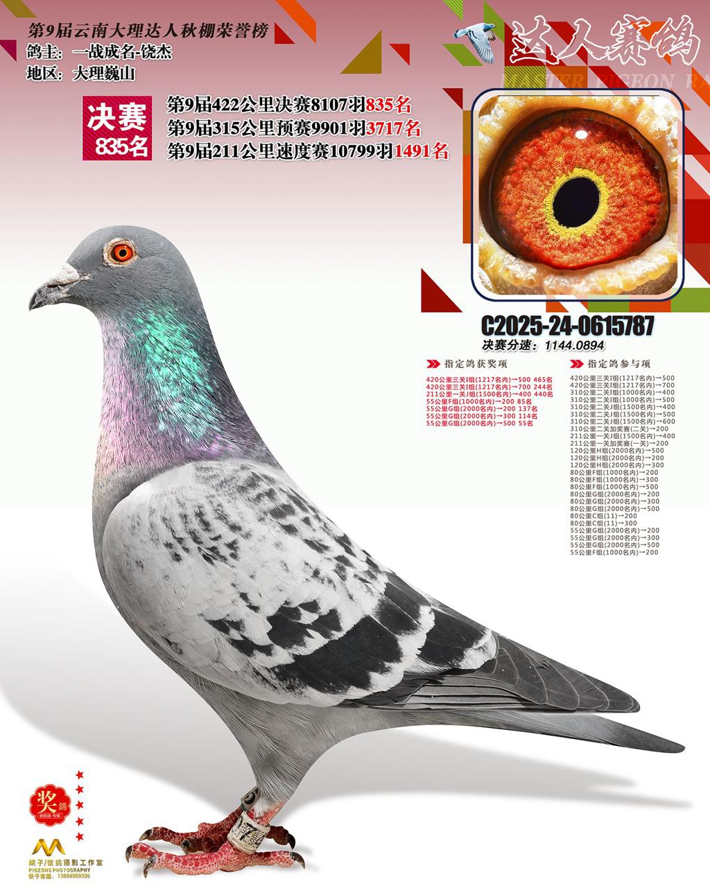 位置:云南大理巍山达人赛鸽中心2025获奖鸽展示\835名