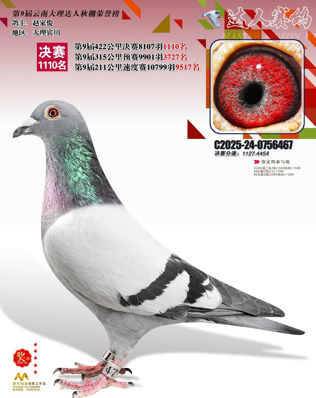 位置:云南大理巍山达人赛鸽中心2025获奖鸽展示\1110名