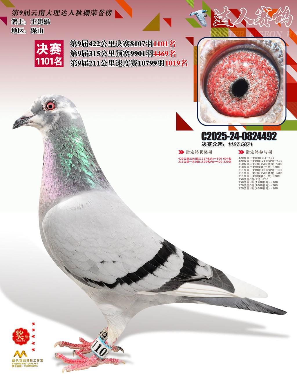 位置:云南大理巍山达人赛鸽中心2025获奖鸽展示\1101名