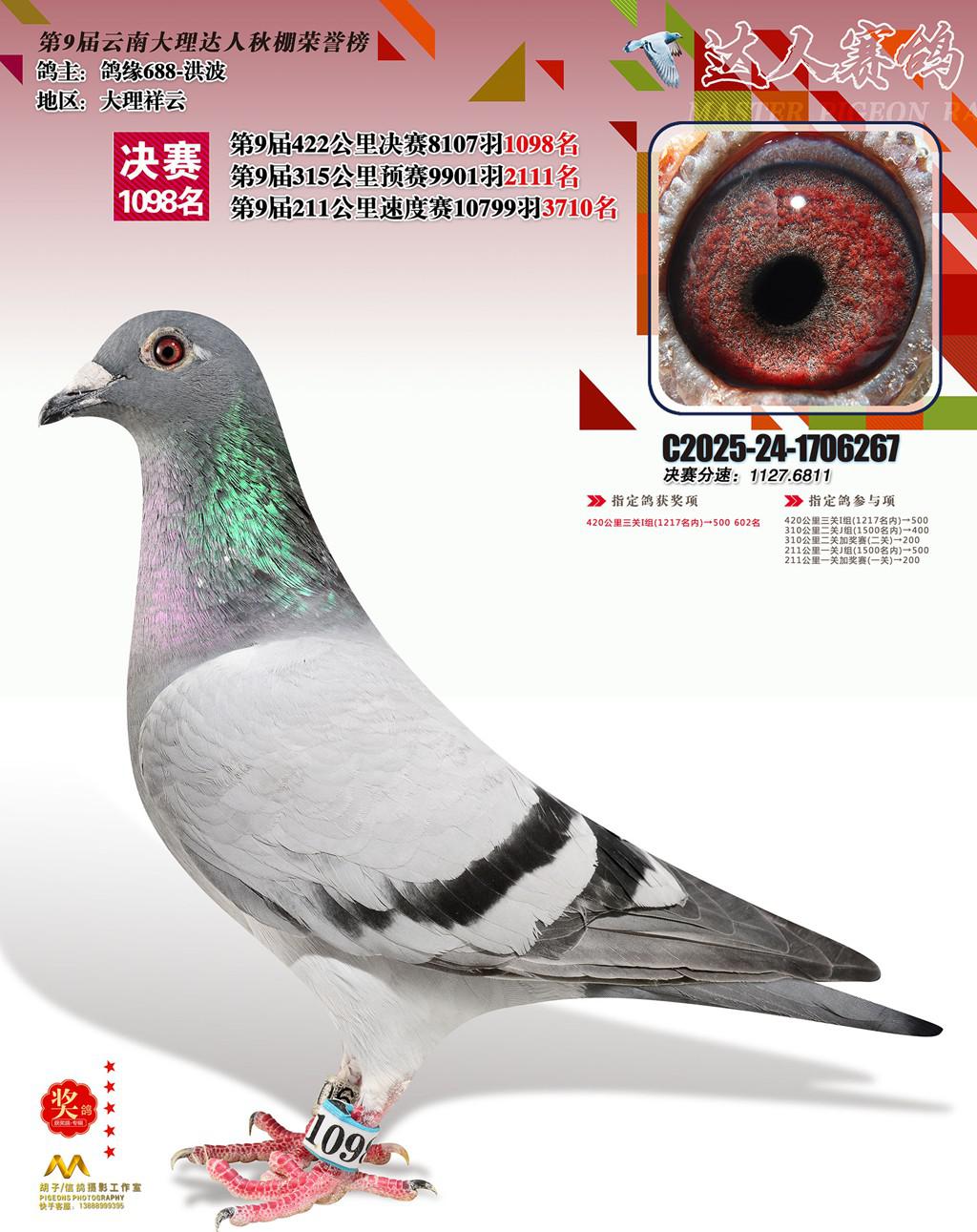 位置:云南大理巍山达人赛鸽中心2025获奖鸽展示\1098名