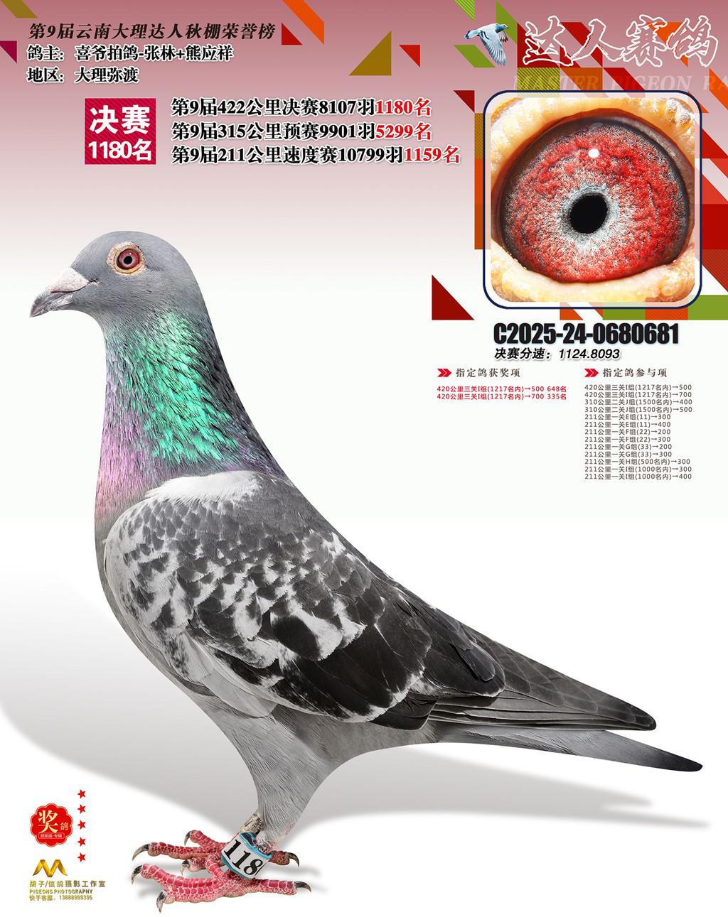位置:云南大理巍山达人赛鸽中心2025获奖鸽展示\1180名