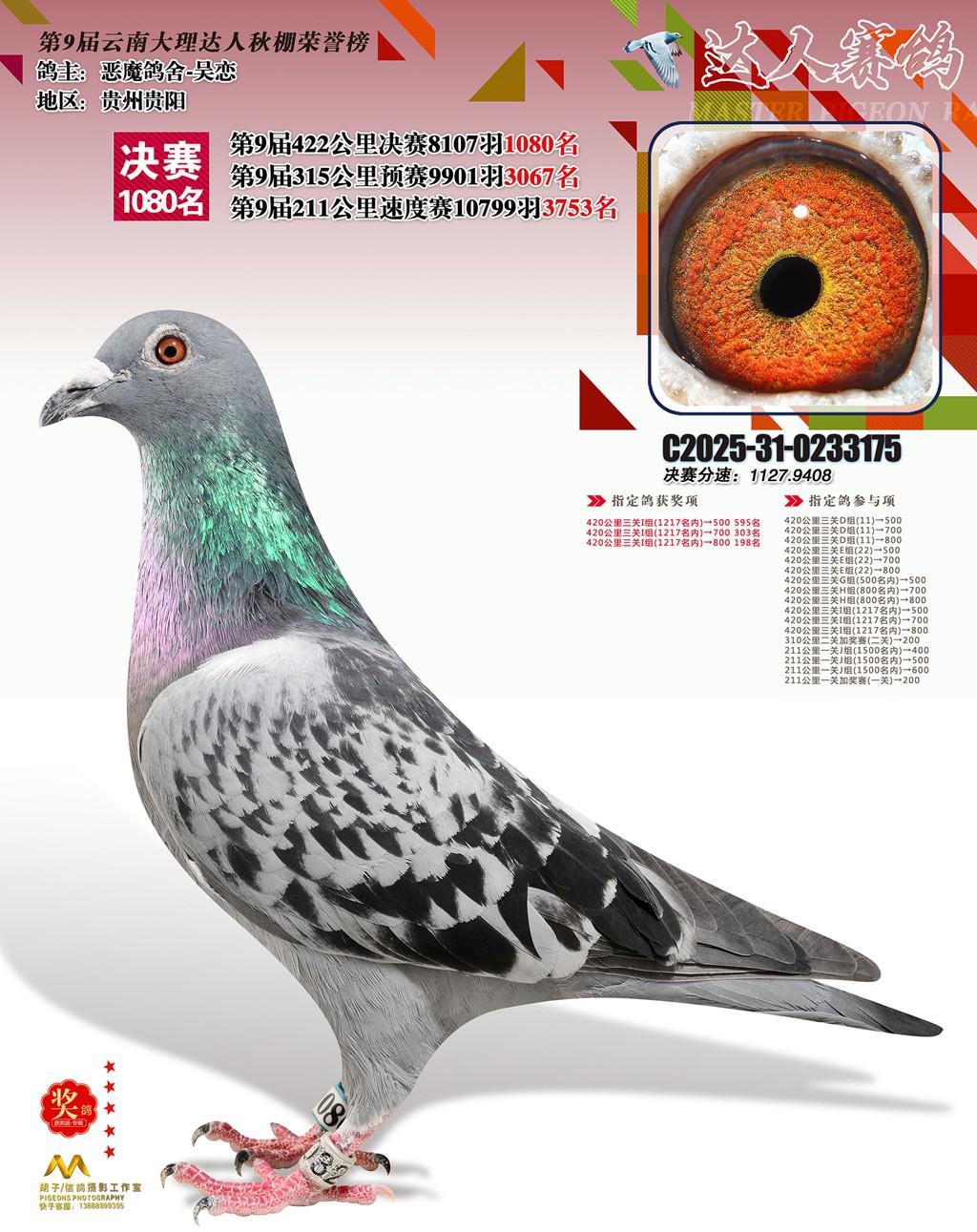 位置:云南大理巍山达人赛鸽中心2025获奖鸽展示\1080名