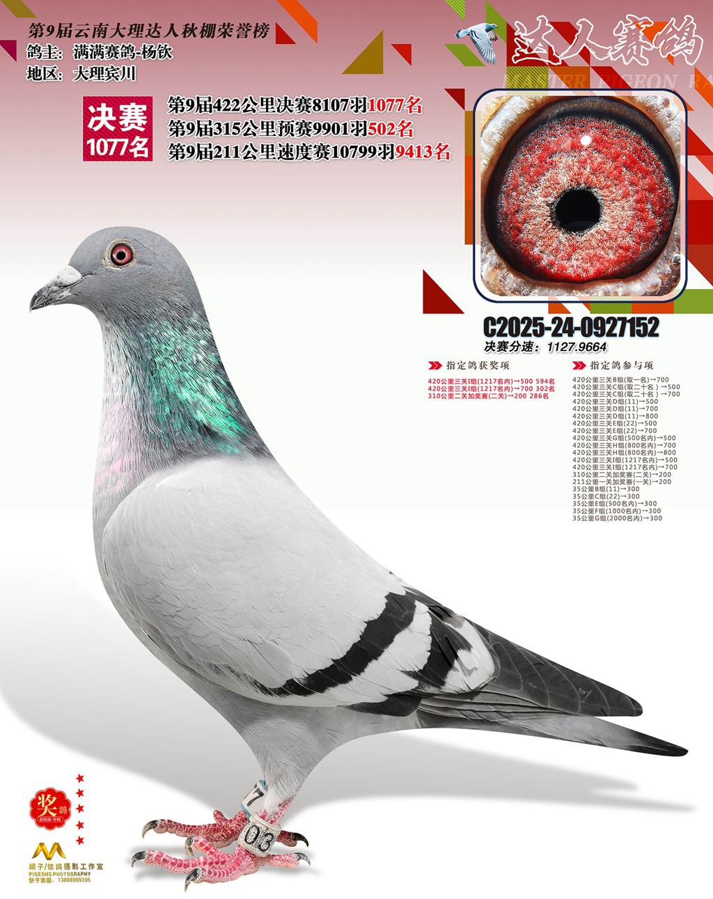 位置:云南大理巍山达人赛鸽中心2025获奖鸽展示\1077名
