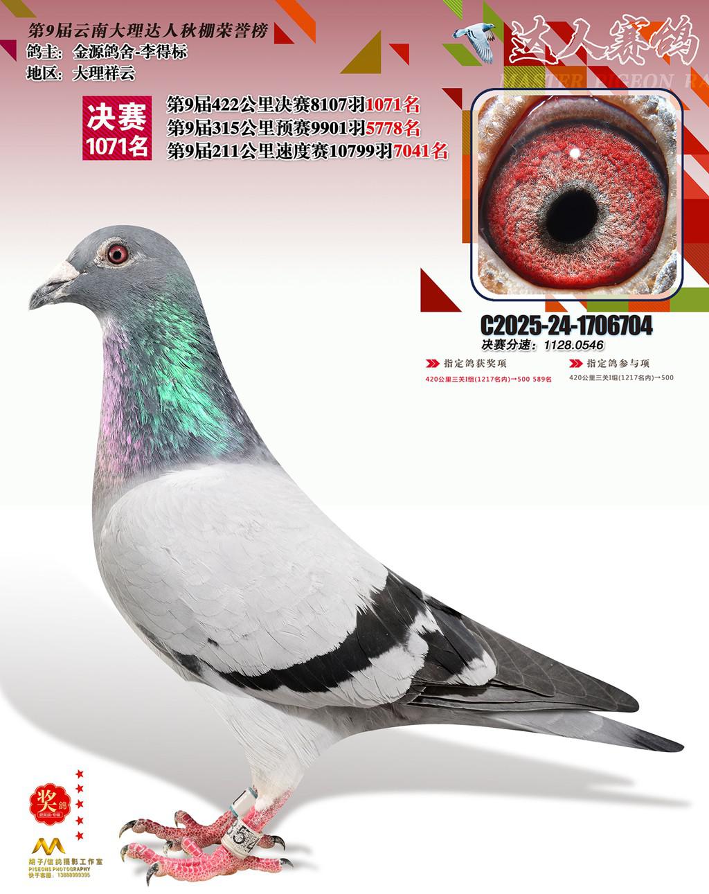 位置:云南大理巍山达人赛鸽中心2025获奖鸽展示\1071名