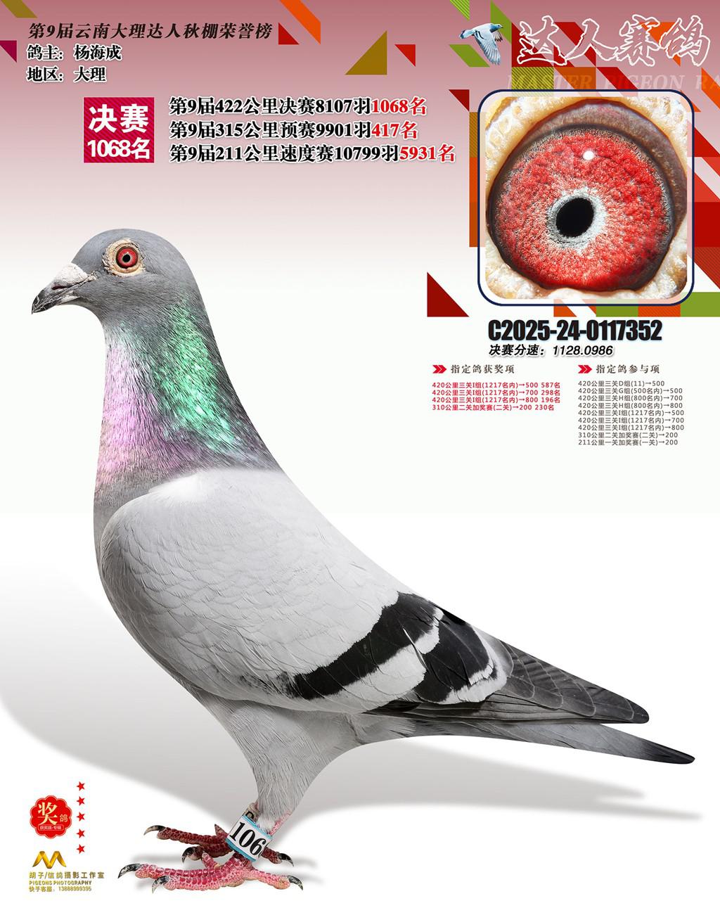 位置:云南大理巍山达人赛鸽中心2025获奖鸽展示\1068名