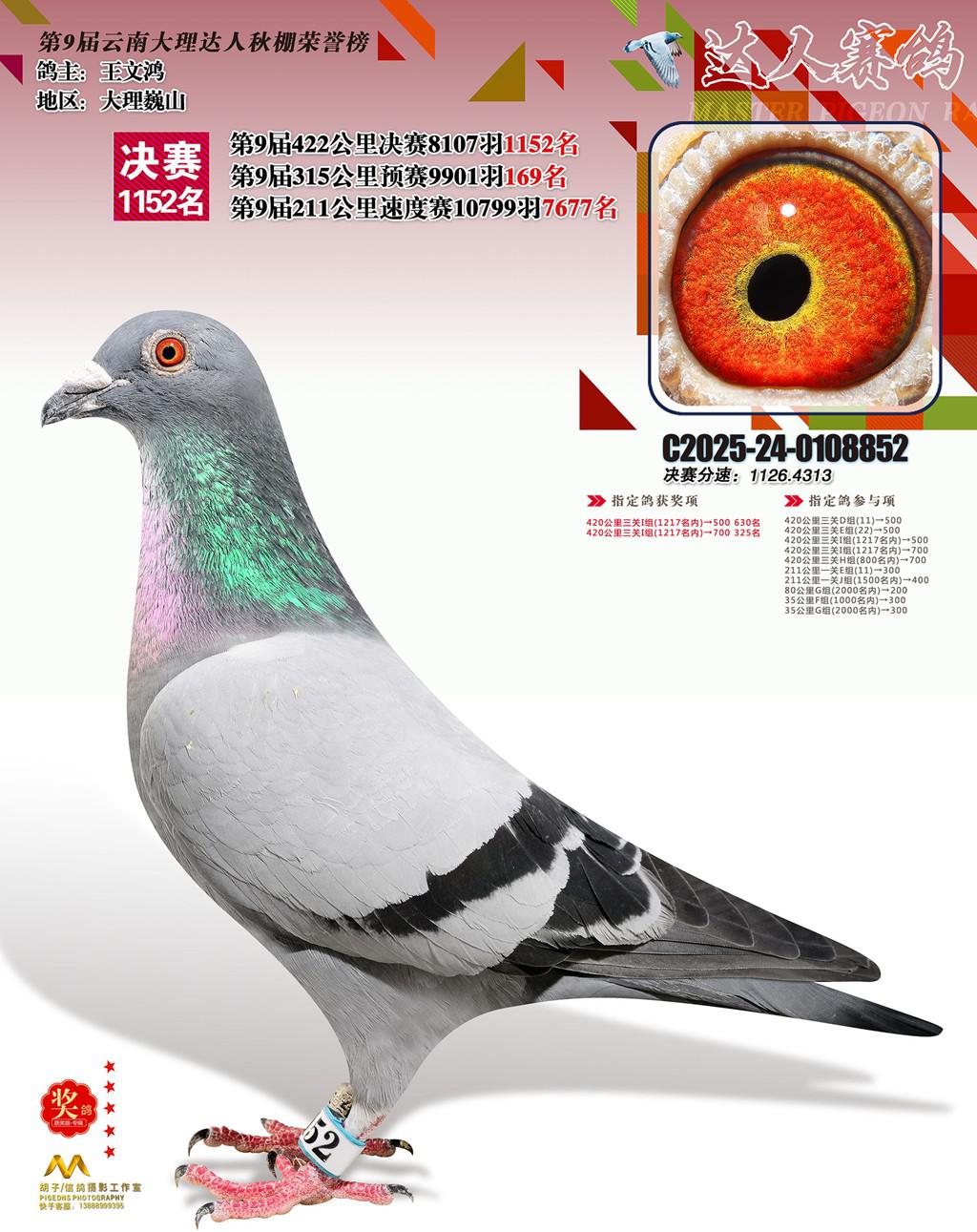 位置:云南大理巍山达人赛鸽中心2025获奖鸽展示\1152名