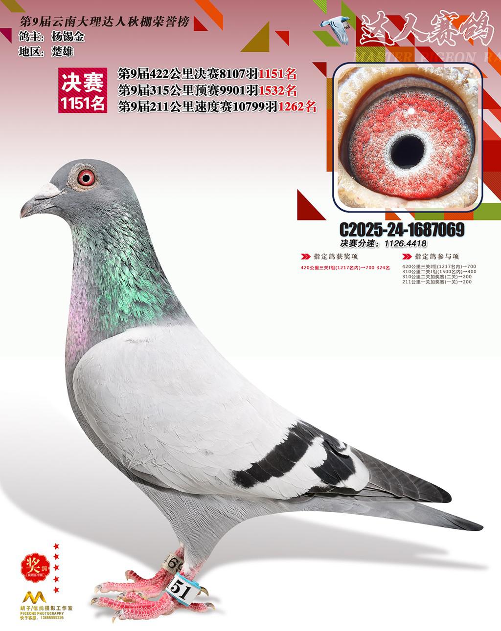 位置:云南大理巍山达人赛鸽中心2025获奖鸽展示\1151名