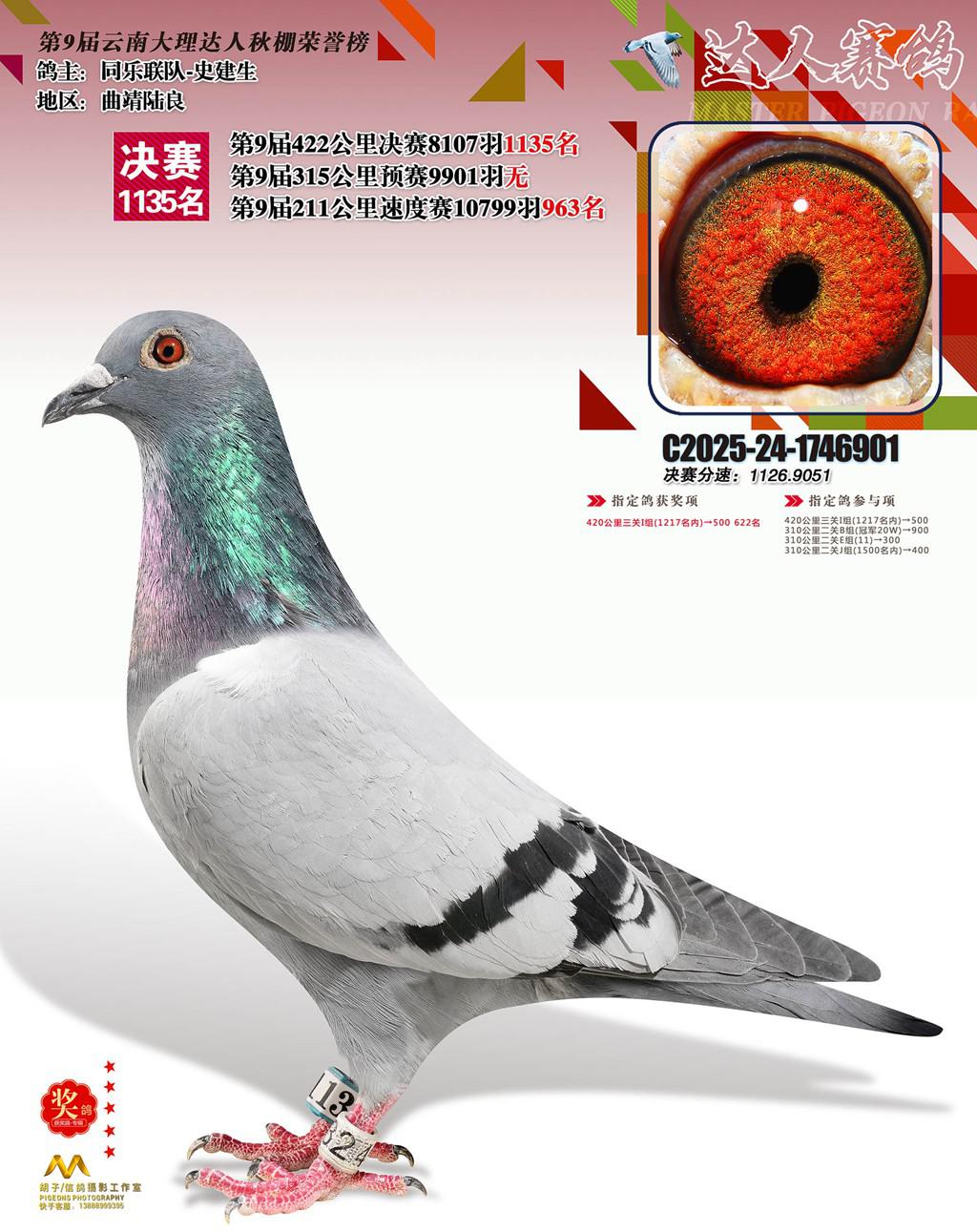 位置:云南大理巍山达人赛鸽中心2025获奖鸽展示\1135名