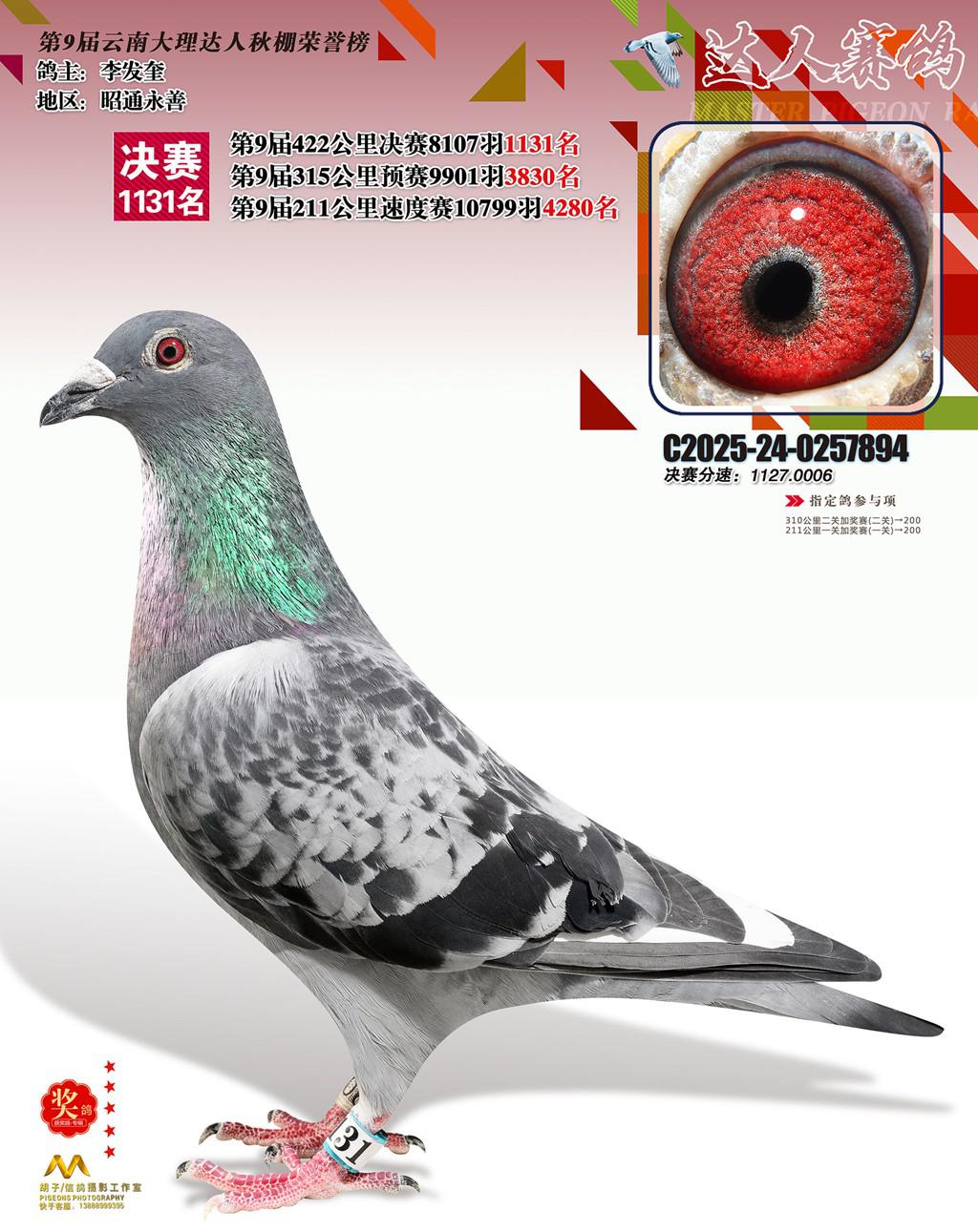 位置:云南大理巍山达人赛鸽中心2025获奖鸽展示\1131名