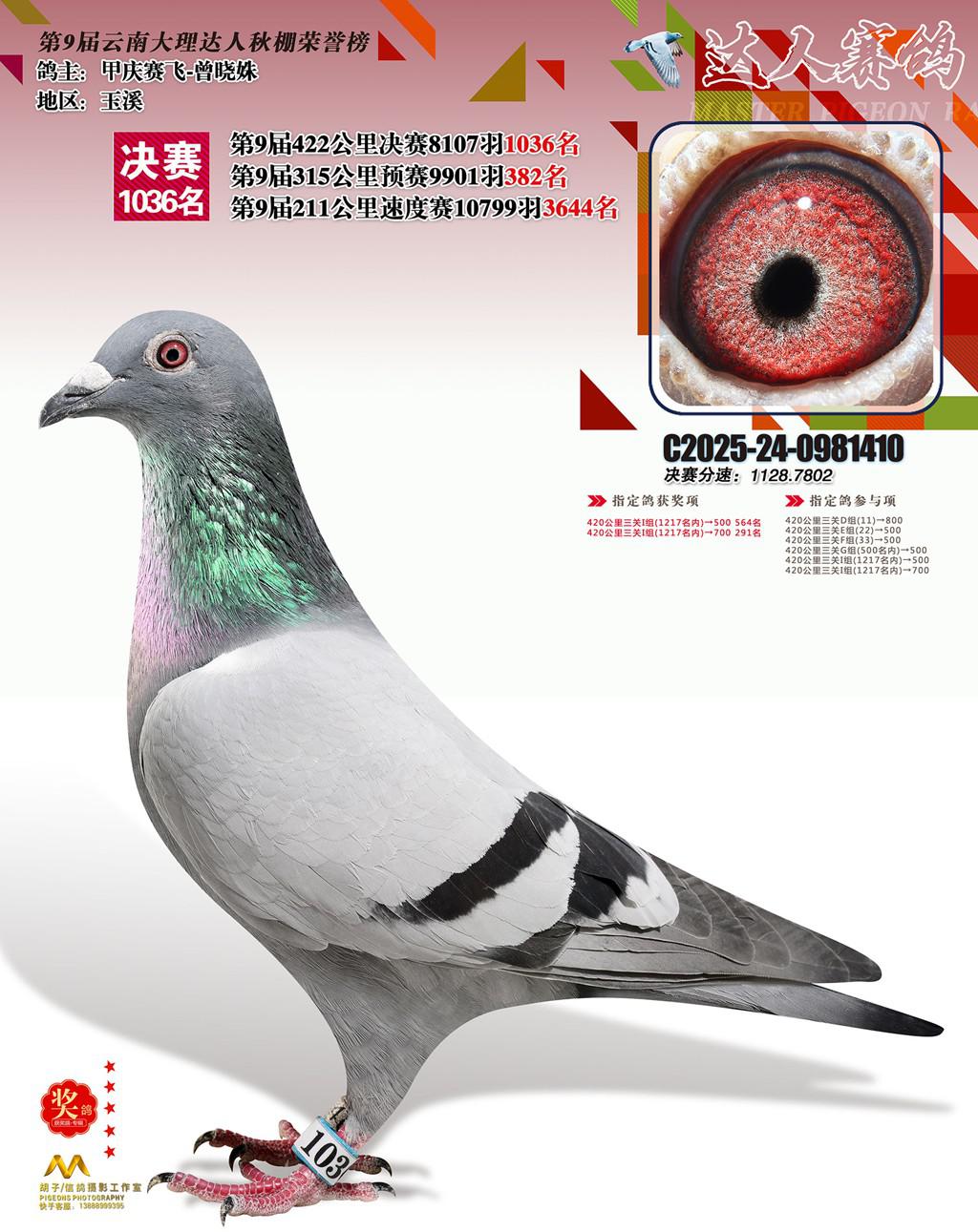 位置:云南大理巍山达人赛鸽中心2025获奖鸽展示\1036名