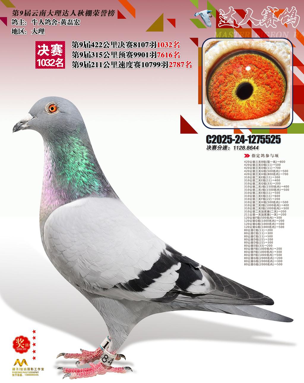 位置:云南大理巍山达人赛鸽中心2025获奖鸽展示\1032名
