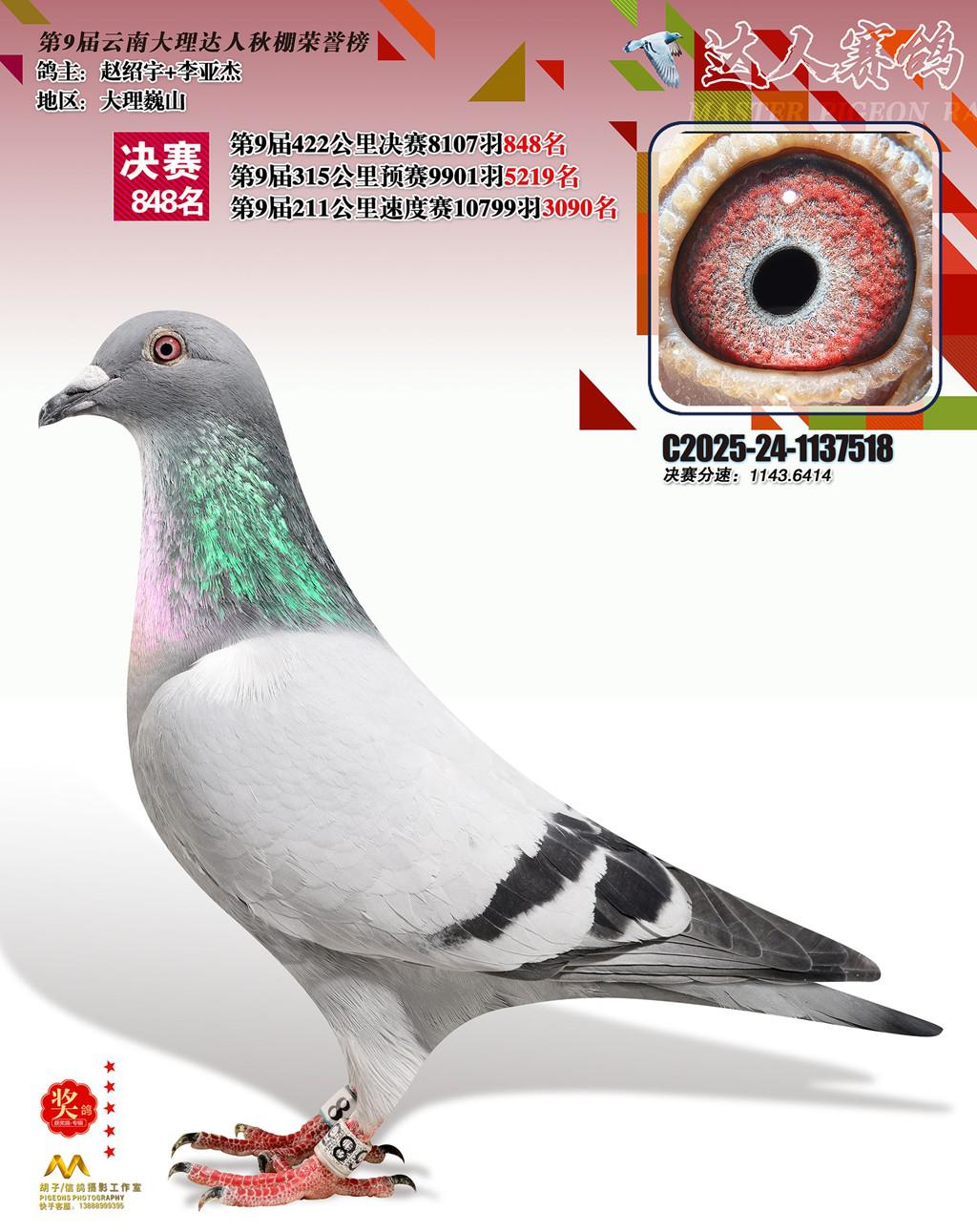 位置:云南大理巍山达人赛鸽中心2025获奖鸽展示\848名
