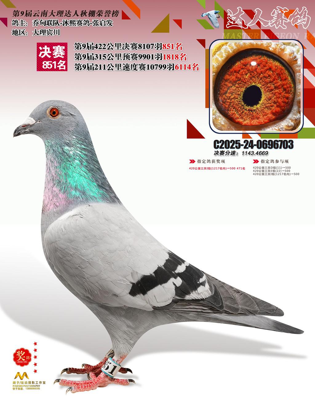 位置:云南大理巍山达人赛鸽中心2025获奖鸽展示\851名