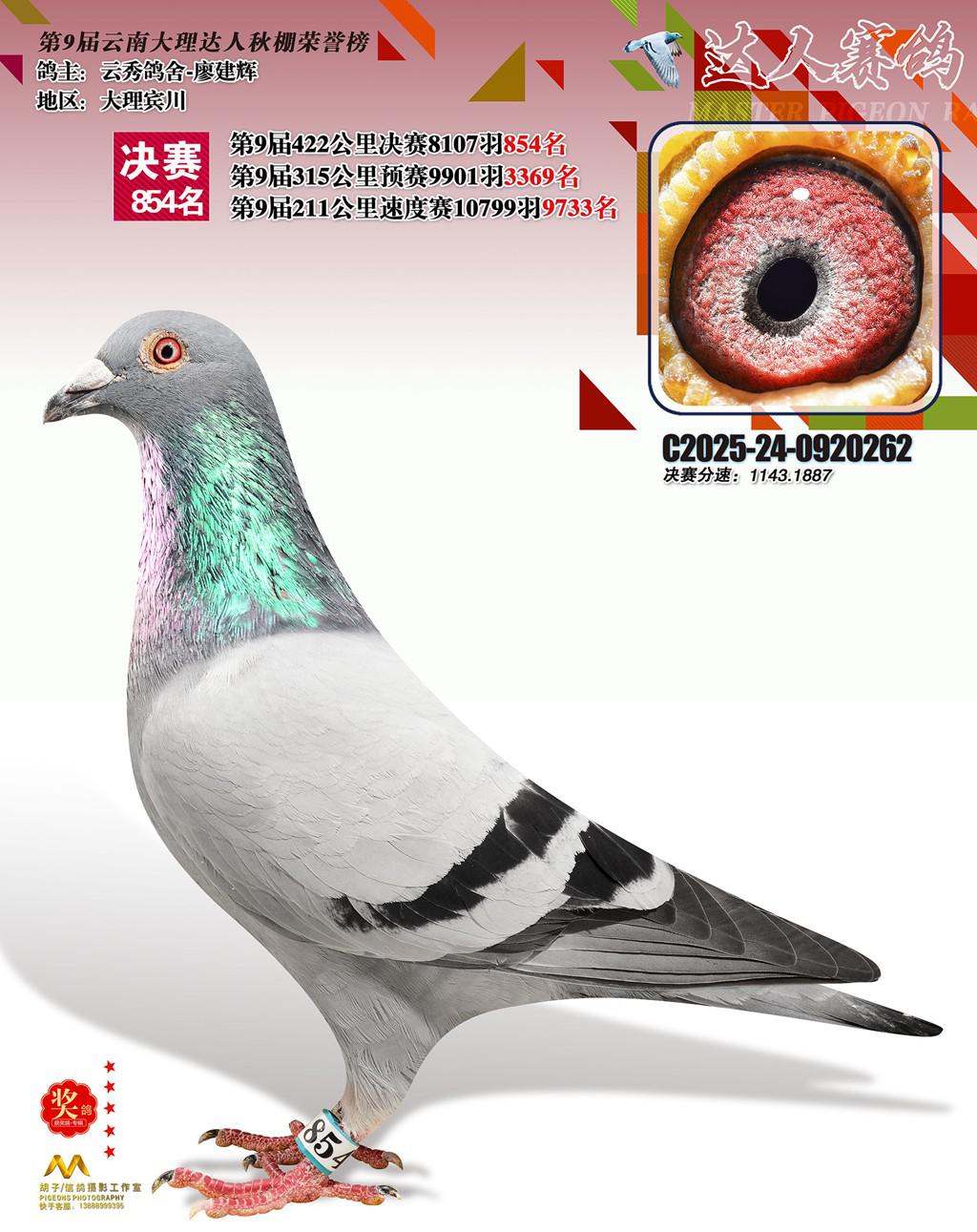 位置:云南大理巍山达人赛鸽中心2025获奖鸽展示\854名