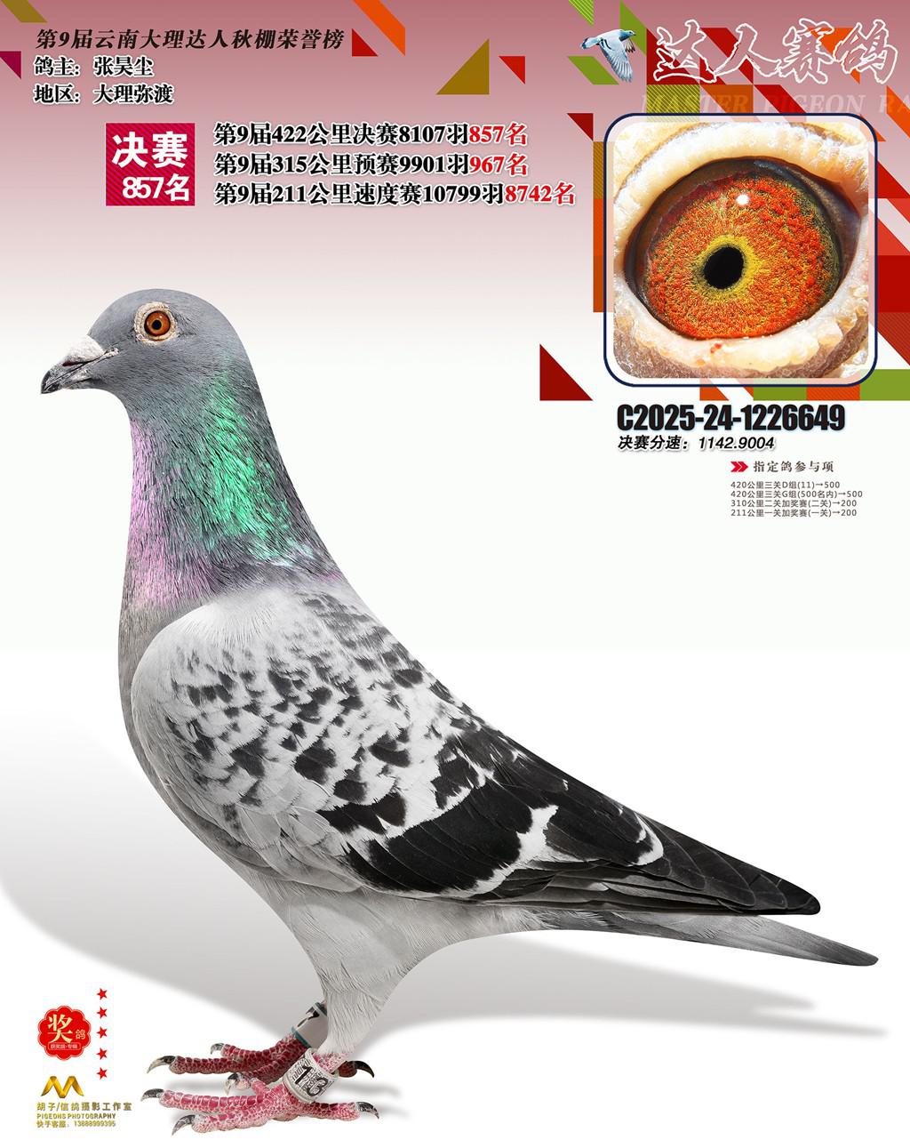 位置:云南大理巍山达人赛鸽中心2025获奖鸽展示\857名