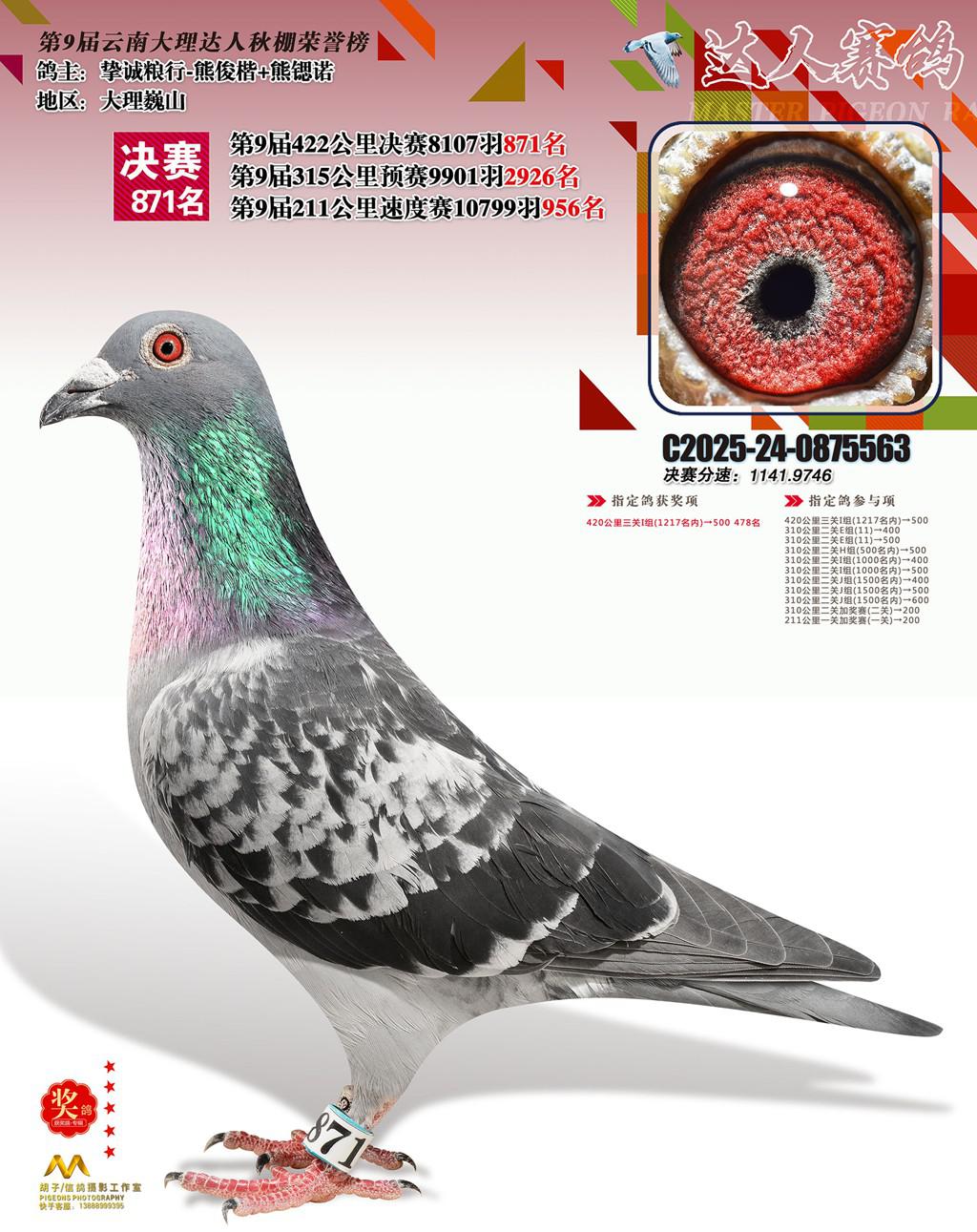 位置:云南大理巍山达人赛鸽中心2025获奖鸽展示\871名