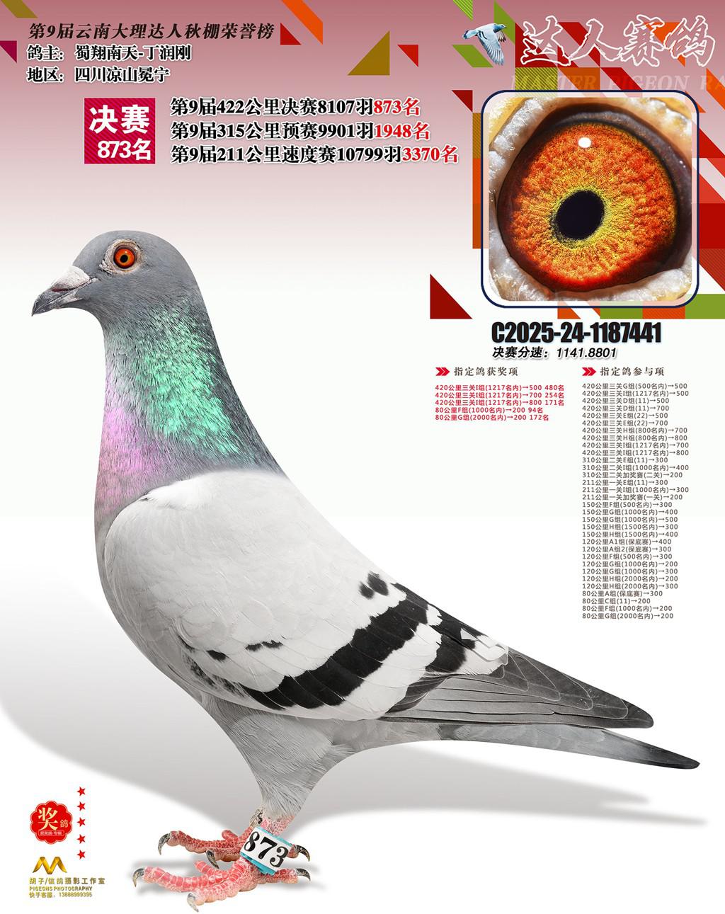 位置:云南大理巍山达人赛鸽中心2025获奖鸽展示\873名