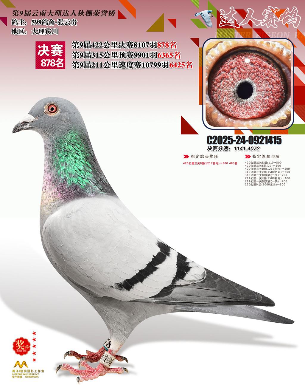 位置:云南大理巍山达人赛鸽中心2025获奖鸽展示\878名