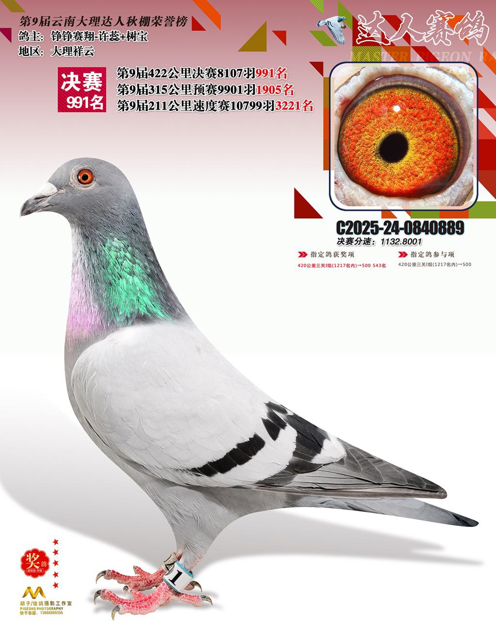 位置:云南大理巍山达人赛鸽中心2025获奖鸽展示\991名