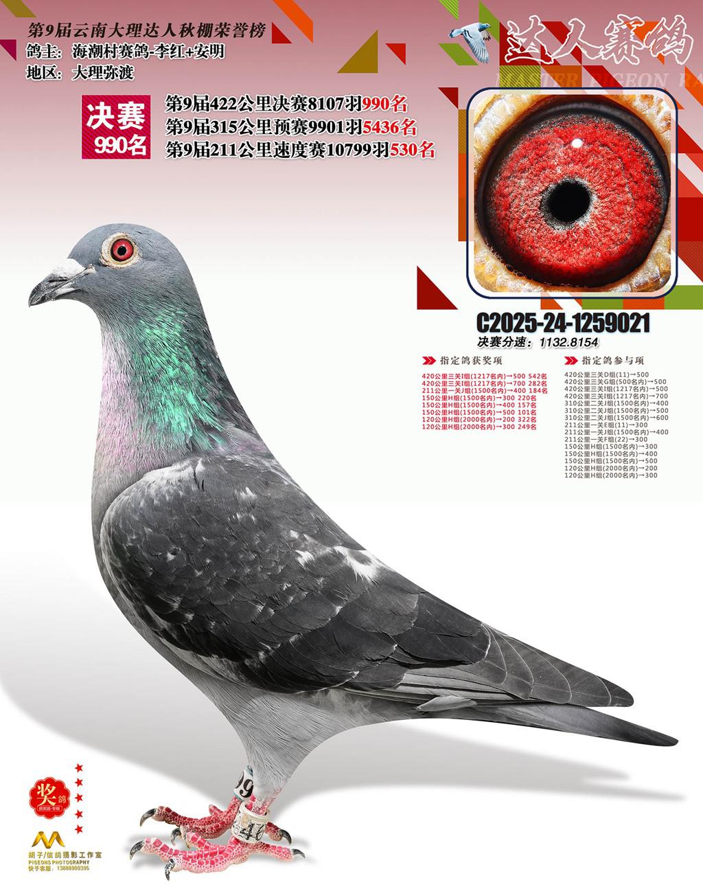 位置:云南大理巍山达人赛鸽中心2025获奖鸽展示\990名